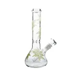 The most exciting feature of the beaker bong is that the hand-drawing theme leaf will glow in the dark. The glowing material is proportionally painted around the external surface of the water pipe.