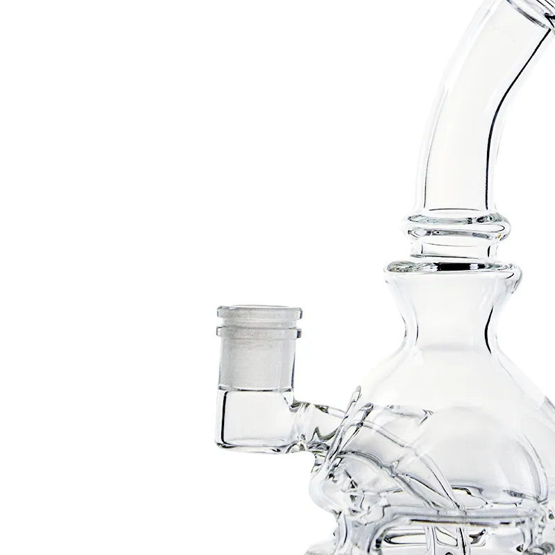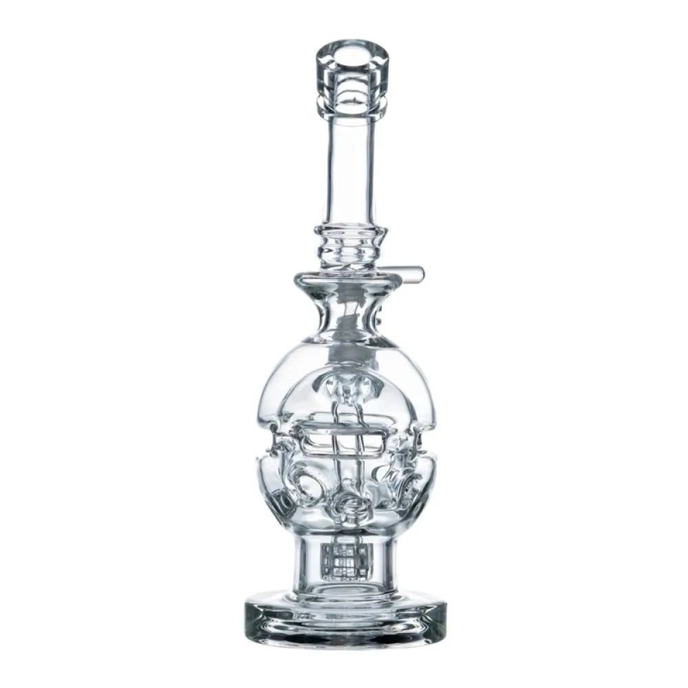 This best dab rig features a unique shape which attracts your attention when have a glance of it. It mainly consists of five parts: mouthpiece, neck, swiss perc, joint and base. The mouthpiece is two times larger than normal one, which means that you can have your mouth fully covered by it so that no smoke can leak out when you take a deep breath-in. The bent neck saves you free from having you neck bent. You can just nod your head down a little bit, which protects your neck bones. The percolator is the most attracting part of the dab rig. There are two percolators: showerhead perc and swiss perc. Besides the effective swiss perc, there are six ice pinches inserted inside the oval. The fab eggs works smoothly. The large base gives the best bongs a more stabilized support. You don’t have to worry about the stability of the dab rig.
